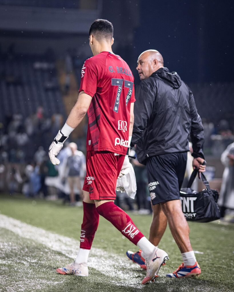 Aquecimento do goleiro Matheus Cunha no Estádio Barradão